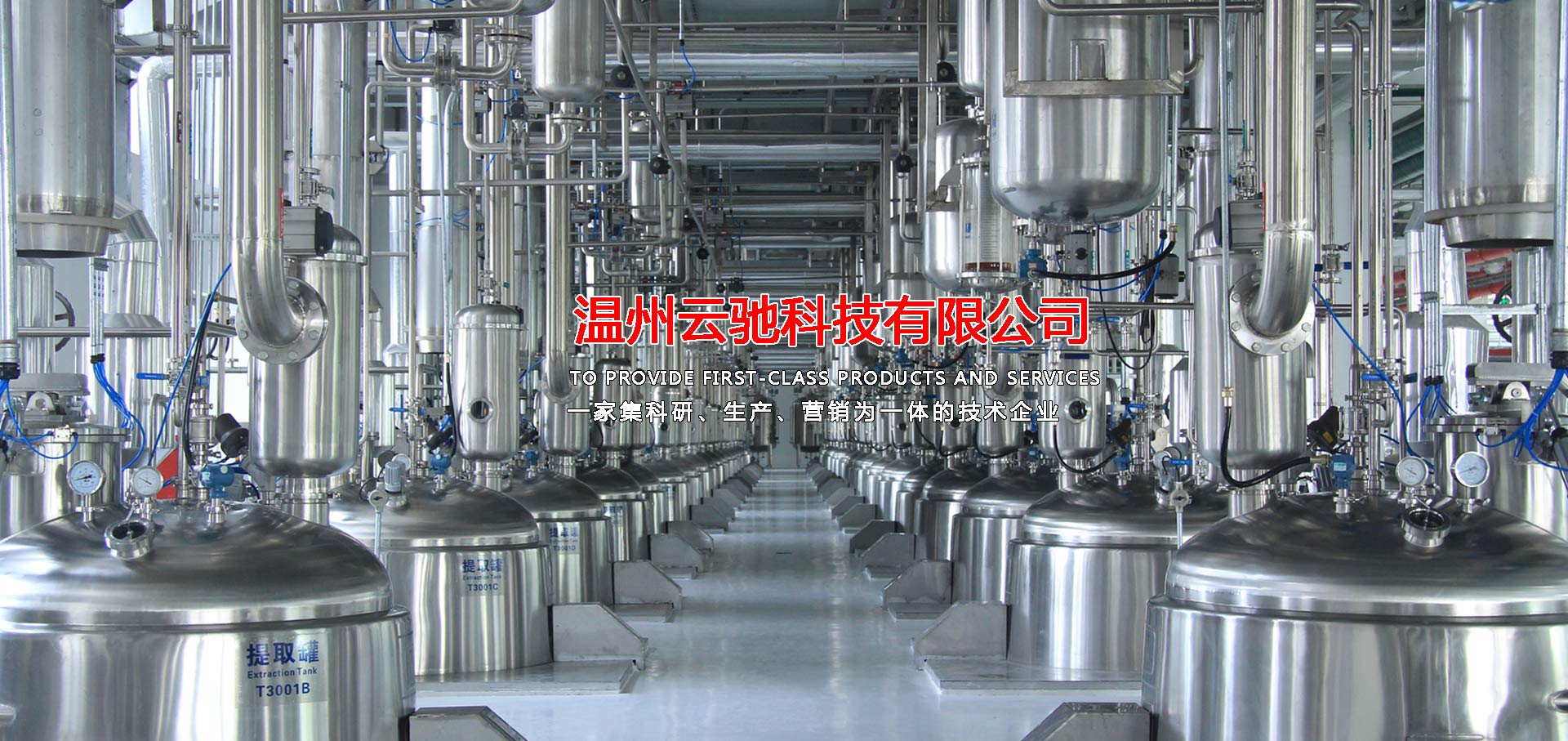 溫州云馳科技有限公司是一家集科研、生產(chǎn)、營(yíng)銷為一體的技術(shù)企業(yè),本公司生產(chǎn)的中藥提取、濃縮、蒸發(fā)及有機(jī)溶媒回收設(shè)備,衛(wèi)生級(jí)不銹鋼容器設(shè)備,衛(wèi)生級(jí)管道配件等系列產(chǎn)品,范圍涵蓋制藥工程、乳品工程、生物工程、化工工程等領(lǐng)域,目前,本公司產(chǎn)品包含八大系列和28類品種,分別為中藥提取設(shè)備、濃縮設(shè)備、純化分離設(shè)備,酒精回收設(shè)備,配液系統(tǒng)設(shè)備,食品乳品機(jī)械設(shè)備,不銹鋼容器設(shè)備以及輔助配套設(shè)備等,力爭(zhēng)為廣大客戶提供滿意的交鑰匙工程服務(wù),目前,本公司已與多家科研院所及相關(guān)設(shè)計(jì)單位、行業(yè)協(xié)會(huì)、技術(shù)專員合作,建立了完善的科研開(kāi)發(fā)體系,技術(shù)力量雄厚,擁有先進(jìn)的質(zhì)量保證體系,我們將打造一支素質(zhì)高,技術(shù)精,服務(wù)熱情的職業(yè)化隊(duì)伍,為廣大客戶解決設(shè)備工藝上的需求和難題并為廣大客戶提供優(yōu)質(zhì)的服務(wù)。